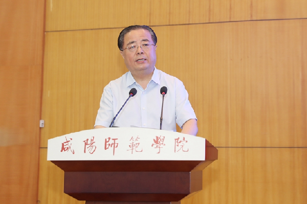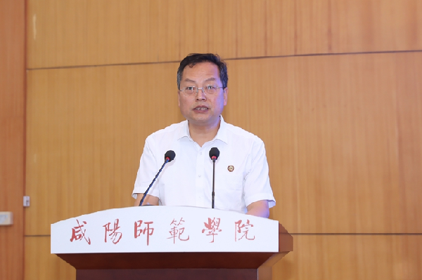 教育部教师工作司司长任友群,陕西省教育厅副厅长王海波,校党委书记赵万东、校长舒世昌,咸阳市教育局局长丁收卫,中国农村教育发展研究院院长东北师范大学研究生院院长邬志辉通过线上或线下方式出席研讨会。副校长王长顺主持开幕式,副校长张弘主持大会。