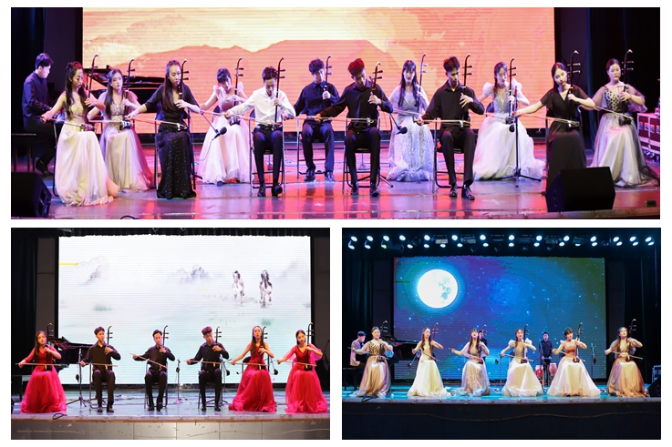 本场音乐会,以圆润柔和的二胡为主基调,与钢琴、大提琴、古筝、长笛等完美结合,既有欢快喜庆的《小花鼓》、磅礴热烈的《赛马》婉转悠扬的《彩云追月》等传统二胡作品,也有突破与创新在体现红色元素的《光明行》中,大胆地借鉴了西方音乐的创作技巧以及二胡演奏中使用小提琴的指法、弓法,既增添了民族音乐的时尚感,又讴歌了追求光明的无畏精神。