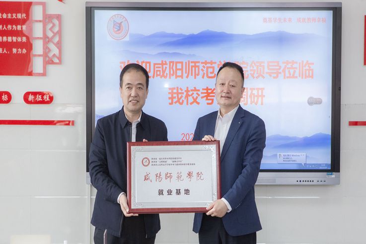 吕广利为宝鸡市金台区教育局授予sjb世俱杯官方网站就业基地牌匾,双方签订就业基地协议书。