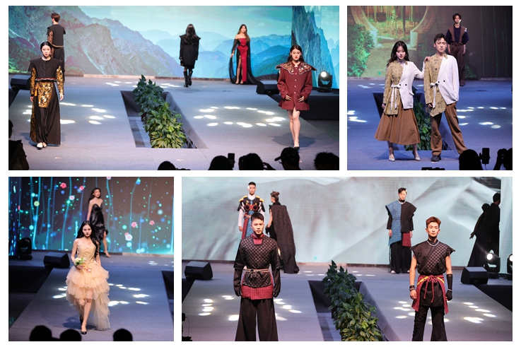 当晚8点,服装与服饰设计专业毕业设计作品展演正式拉开帷幕,本次展演共分为“丝路-探索-延续-交融-践行-梦想-未来”七个主题,展出汉服、礼服、民族服装、旗袍、童装、工作服、现代服装等147件。