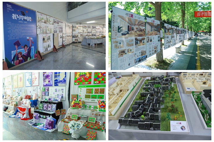 本次展览以“赓续、融合、创新、发展”为主题,从6月1日开始持续7天,分静态展区和动态展区两大板块,共展出视觉传达设计、环境设计、产品设计、服装与服饰设计四个专业434件作品。设计学子们聚焦“文化自信”、“服务地方”等关键词,用心感悟,大胆设计,作品不仅展现出毕业生们孜孜以求的专业探索,更生动体现了莘莘学子对艺术瑰丽的想象、深邃的好奇和坚韧的探索。