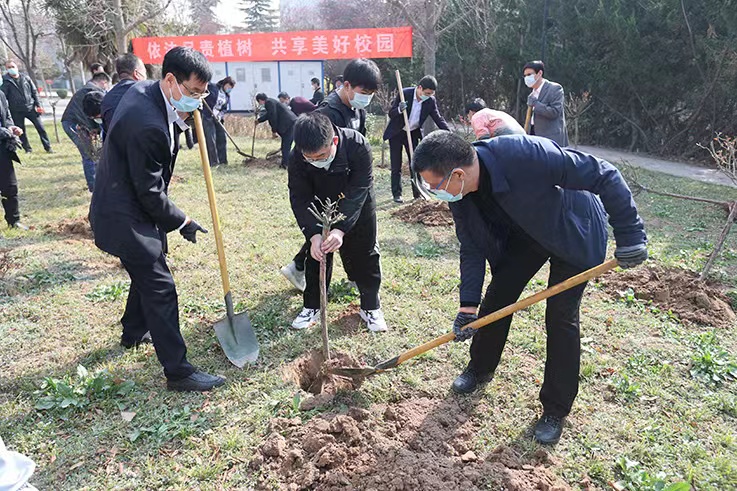 校党委书记赵万东指出,树苗承载着众人的爱心与希望,必将如青年大学生一般茁壮成长,盎然生机,同学们要自觉将绿色发展理念根植于心、见之于行,不断锤炼自身意志品质,把劳动教育的精神和要求创造性地落在实处,发挥劳动教育独特的育人价值。
