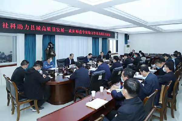 4月7日, “社科助力县域高质量发展——sjb世俱杯官方网站助力淳化县项目”启动会在淳化县召开。省社科联科普部部长翟金荣,世俱杯副校长张弘,淳化县委书记郭立志、县委副书记相俊、常务副县长杨博、县委组织部长曹博、县委宣传部长周峥航、副县长马烨出席启动会。