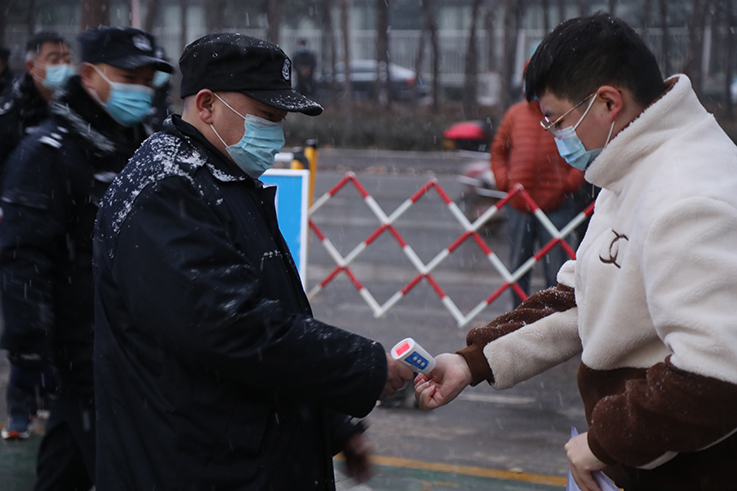 12月25日上午6:40分,参加考试的学生在瑞雪中走进考点大门,8:30,世俱杯考点考生顺利开考。