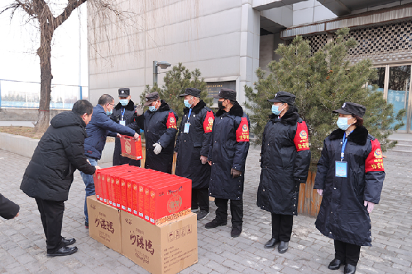 张弘一行先后来到学校总值班室、公寓值班室、民族餐厅、学校西大门和秦都校区,看望慰问了在各个岗位值守的保卫处、后勤保障处、学生处以及职业技术学院的工作人员,并检查了校园疫情防控工作。张弘与值班员工亲切交谈,详细了解节日期间学校的供电、安保、饮食服务以及疫情防控措施落实情况,向他们在春节期间坚守一线表示敬意并送上慰问品,勉励大家继续发扬在疫情防控期间表现出来的优良工作作风,尽职尽责,全力做好服务保障和疫情防控工作,确保全校教职员工度过一个愉快、平安、祥和的春节。