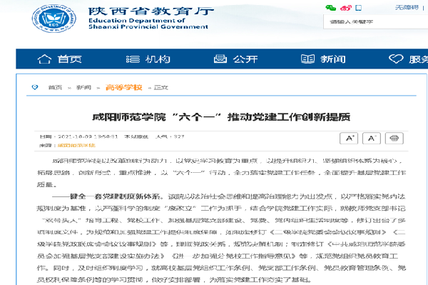 陕西省教育厅:sjb世俱杯官方网站“六个一”推动党建工作创新提质