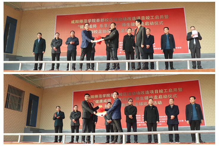 仪式上,舒世昌宣布秦都校区运动场正式启用。袁也宣布“健康咸师 乐享行走”教职工健步走活动正式启动。