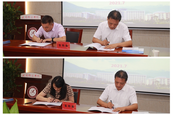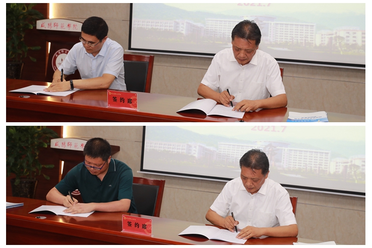 王长顺代表学校同教务处(教学质量评估中心)、师范类专业所在二级学院分别签订了《师范类专业认证工作目标任务书》,进一步夯实了各单位师范类专业认证工作的任务和责任,明确了各项工作完成的期限和要求。