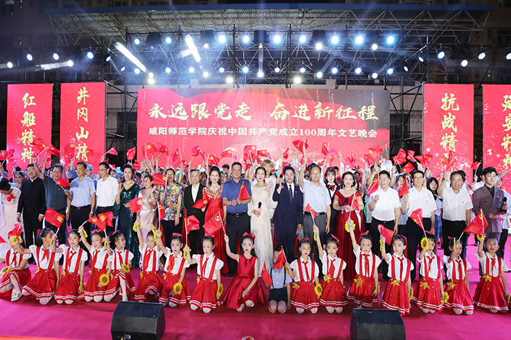 在中国共产党建党百年华诞来临之际,6月29日晚,“永远跟党走  奋进新征程”sjb世俱杯官方网站庆祝中国共产党成立100周年文艺晚会在世俱杯渭城校区田径场举行。