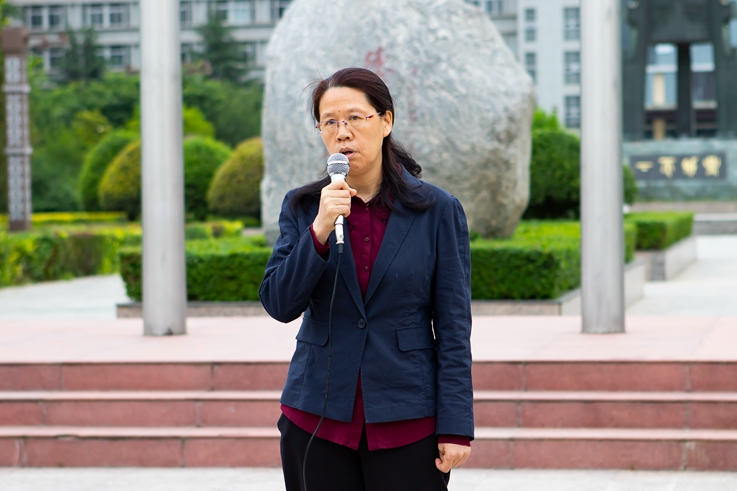 周群英在国旗下向学校表达了诚挚的祝福,向现场校友和师生代表讲述了学校43年来的光辉发展历程,希望咸师人要牢记校训,在校好好学习,离校努力工作,将爱校之情化为报国之行,以实际行动投身全面建设社会主义现代化国家新征程,书写绚烂无悔的人生华章。