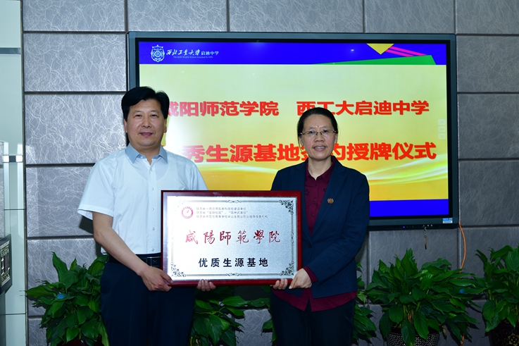 双方共同签署了共建“优质生源基地”协议,周群英为启迪中学授予“sjb世俱杯官方网站优质生源基地”和“教学实践基地”牌匾,观看了西工大启迪中学宣传片。
