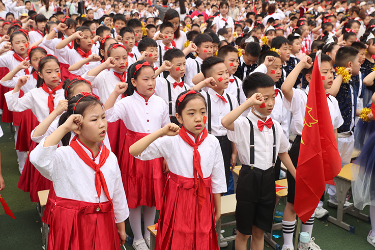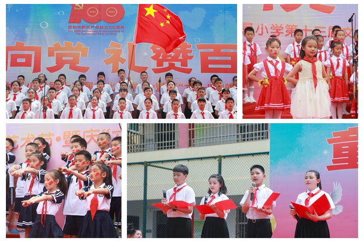 全校师生齐唱歌曲《万疆》,赞祖国盛世如朝阳,全体少先队员重温入队誓词,附小全校22个班级唱红歌、颂党史,赞百年辉煌征程,誓做祖国栋梁。同学们用甜美嘹亮的歌声,表达了“童心向党 礼赞百年”的无限深情和壮志豪情,他们用精彩的演出,动听的音符和充满激情的朗诵表达着对党的真挚热爱和衷心祝福。