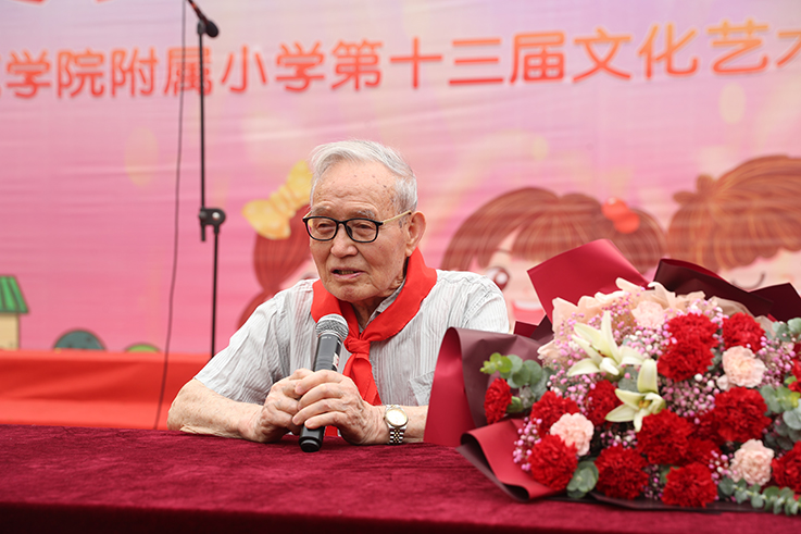 吕广利代表学校为孩子们送上了节日的祝福,对全体附小教师和学生提出殷切期望。世俱杯离休老战士程志兴为师生们讲述了革命故事,回忆往昔奋斗历史,感悟岁月不易,点赞盛世今朝。