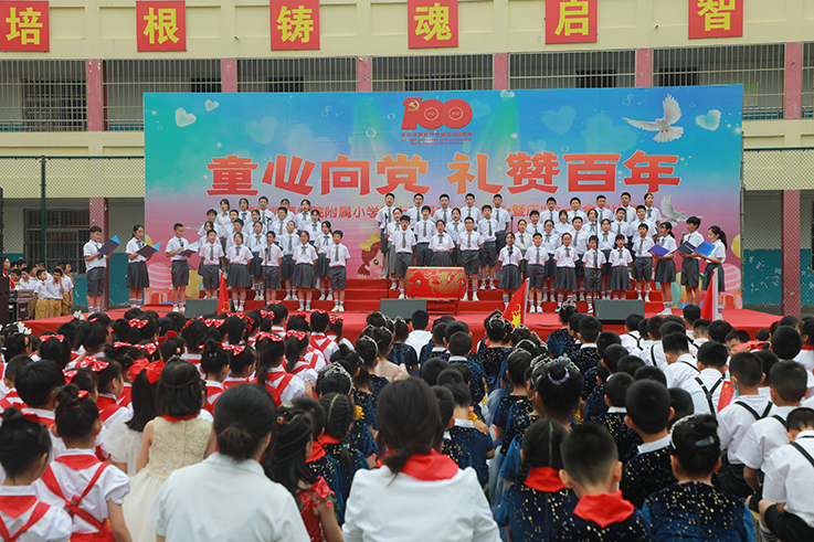 6月1日,是第71个国际儿童节。附属小学举行第十三届校园文化艺术节开幕式暨“童心向党 礼赞百年” 合唱比赛,庆祝六一儿童节。校党委书记赵万东,副校长吕广利出席。