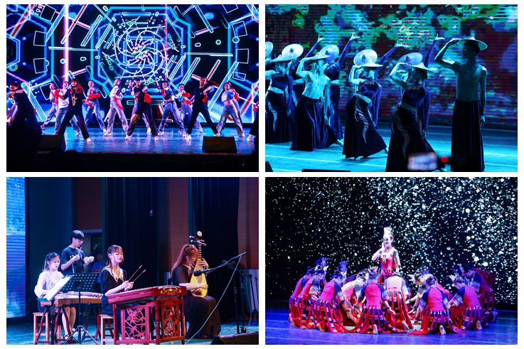 晚会以现代舞《好运来》拉开帷幕。独唱《七月的草原》、《鹰翔》和《党旗飘扬的方向》使全场观众深切感受到校友们的风采;舞蹈《碇步桥水清悠悠》、《一抹红》和《陶醉了》使全场观众沉浸在艺术魅力的海洋中;器乐演奏《Lady gaga》、《秦之声》、《帕米尔的春天》、《小花鼓》和《彩云追月》让在场观众感受到乐器的美妙旋律;特别是校党委副书记周群英的配乐朗诵《致毕业生》,以真挚情感的演绎使整场晚会达到了高潮;晚会在舞蹈《灯火里的中国》中结束。整场晚会精彩纷呈、高潮迭起,全场师生沉醉其中,共享这美好的视听盛宴。