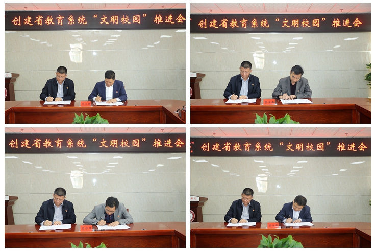 会上,学校创建“文明校园”领导小组办公室传达了全省高校创建文明校园推进会会议精神,汇报了世俱杯前期创建工作和创建“文明校园”责任书制定情况,校党委书记赵万东与二级党委、党总支书记代表签订责任书,后勤保障处处长、党委学工部部长、马克思主义学院党委书记作了表态发言,经济管理学院院长介绍了“文明校园”评审专家组评审有关情况。