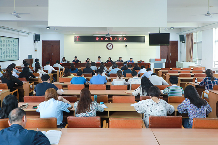会上,学生工作处、招生就业处、保卫处、校团委等部门负责人分别对上月工作作了简要总结,安排部署了5月份重点工作;文学与传播学院、物理与电子工程学院、化学与化工学院、职业技术学院分别从毕业生就业、学生日常教育管理与服务、辅导员素质能力大赛、兼职辅导员工作开展等方面作了交流发言。