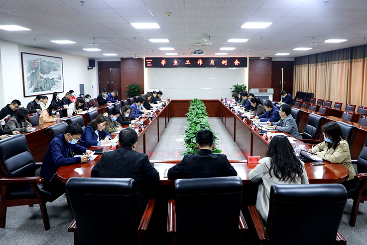 会上,学生工作处、招生就业处、保卫处、校团委等部门负责人分别通报了上月工作开展情况,安排部署了4月份相关工作;设计学院、资源与历史文化学院、计算机学院、教育科学学院、经济与管理学院主管学生工作领导分别从学生日常教育管理、疫情防控、毕业生就业、大学生应征入伍等方面作了交流发言。