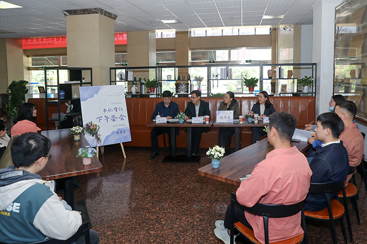 4月28日,校党委副书记周群英邀请2021届困难毕业生代表,在渭城校区创客咖啡厅零距离畅谈就业。