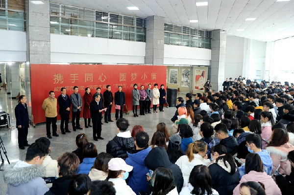 12月22日,由世俱杯与中共淳化县县委、县政府联合主办的“双百工程”—“携手同心·圆梦小康”“写扶贫·画扶贫”书画展在世俱杯艺术楼举行。陕西省委教育工委、省教育厅二级巡视员张双前,咸阳市政协副主席、淳化县县委书记刘涛,省教育工委统战部副部长白莹,校党委副书记、校长舒世昌和全体领导班子成员出席了开幕式。副校长吕广利主持开幕式。