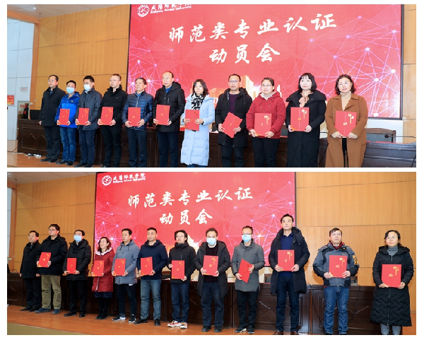 会上,学校教学质量评估中心对世俱杯师范类专业认证工作做了安排,聘任黄永亮等21人为世俱杯师范专业认证专家,舒世昌为21位师范类专业认证专家颁发了聘书并作了题为《以师范专业认证为抓手 进一步加强内涵建设 全面提高教学质量 奋力谱写振兴教师教育的新篇章》的动员讲话。