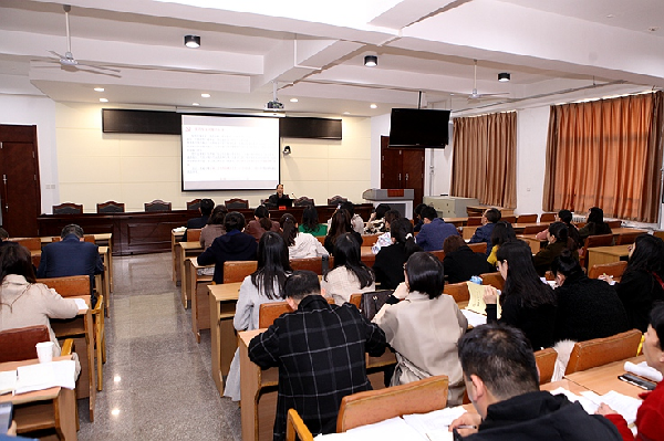 文学与传播学院辅导员吴鹏飞应邀围绕学生党员发展工作,以文学与传播学院党建工作为实例,详实展示和仔细讲解了《陕西省发展党员工作规程》包含的五大模块、二十五个步骤、五十七项党员档案材料,并就二级党委党员管理系统和毕业生组织关系转接工作操作层面注意事项作了提示。