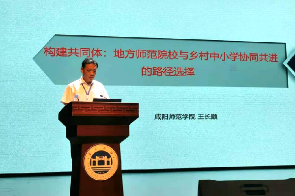论坛上,王长顺作了题为《构建共同体:地方师范院校与乡村中小学协同共进的路径选择》的报告,阐述了地方师范院校和乡村中小学协同共进的重要性和必要性,指出应通过政府政策主导、学校主体发力和师生个体参与三个方面来构建供给端共同体、支持服务共同体、资源平台共同体、个体发展共同体。