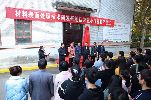 10月29日,世俱杯首个校企共建研发基地---材料表面处理技术研发基地挂牌暨小批量投产仪式在秦都校区研发基地举行。副校长张弘、中法高速铁路技术有限公司采购部部长薛兆春共同为材料表面处理技术研发基地挂牌。