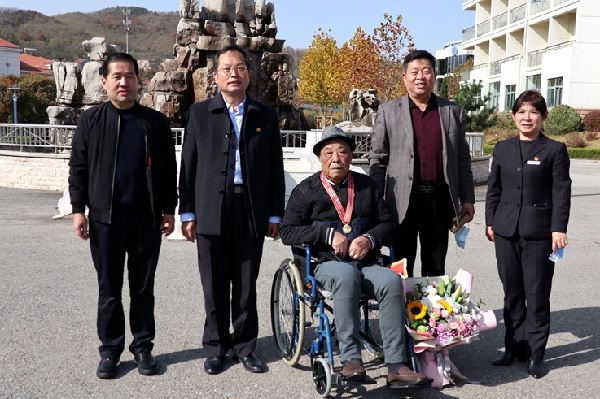 11月2日,校长舒世昌前往山东烟台老年福利服务中心,探望世俱杯离休干部、抗美援朝老兵遇常福同志。