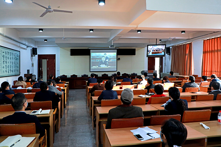 会前所有参会人员集中观看了《陕西省高校新冠肺炎疫情防控应急演练》专题片。