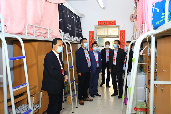 校党委书记赵万东,校长舒世昌,校党委副书记袁也,校党委副书记、纪委书记、监察专员王启和,副校长毛龙灿、王长顺深入现场检查指导返校工作开展情况。