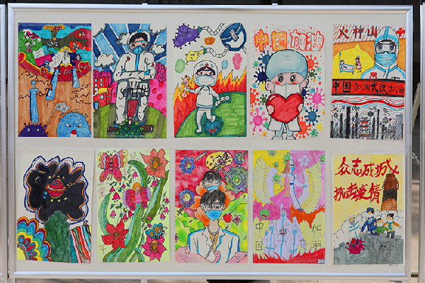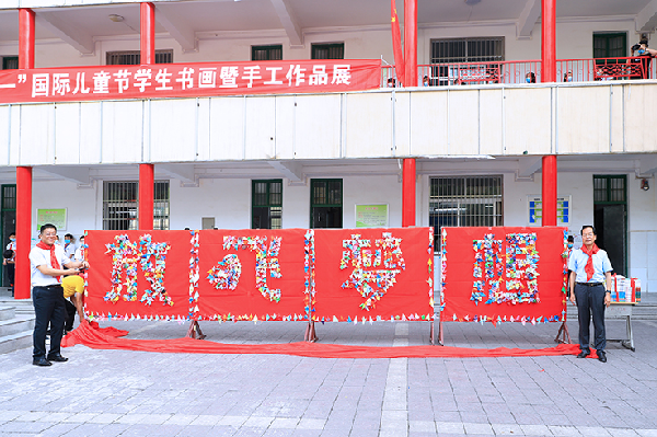 在仪式现场,少先队员为校领导佩戴红领巾,赵万东、舒世昌为小学生们用千纸鹤拼成的“放飞梦想”揭幕,并参观了学生书法、绘画、科技作品展。