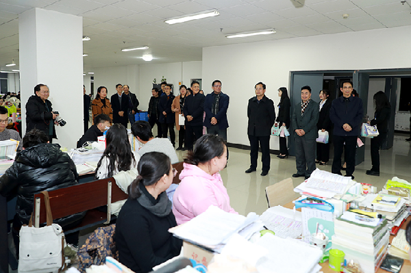在2020年全国硕士研究生招生考试即将到来之际,为鼓励奋战迎考的学子,12月18日晚,校党委书记赵万东,党委副书记、校长舒世昌,党委副书记袁也,副校长毛龙灿、王长顺等前往图书馆,为备战考研的学生送上慰问与祝福。