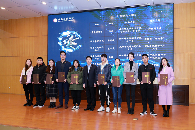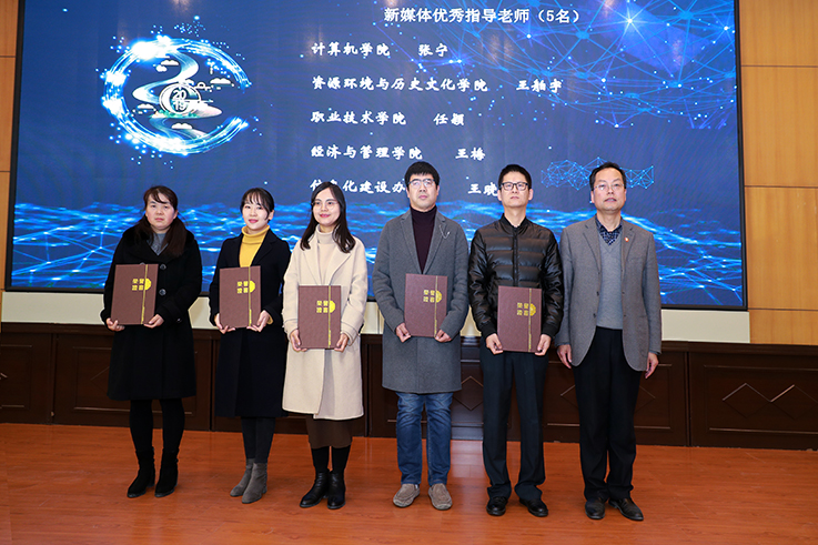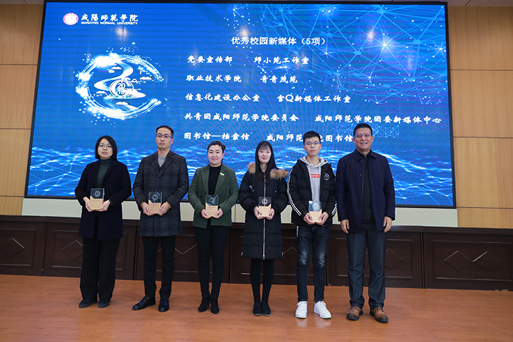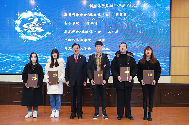 校领导为评选出的校园新媒体先进集体及个人颁发了奖牌和证书。师小苑工作室等5个新媒体作为校园优秀新媒体,张宁等5名教师作为新媒体优秀指导老师,梁蓓蓓等5名同学作为新媒体优秀学生记者,《你来,或者不来,书就在这里;你爱,或者不爱,图书馆永远爱您》等5项作品作为图文类新媒体优秀作品,《师院抖肩舞》等5项作品作为视听类新媒体优秀作品,受到大会表彰。