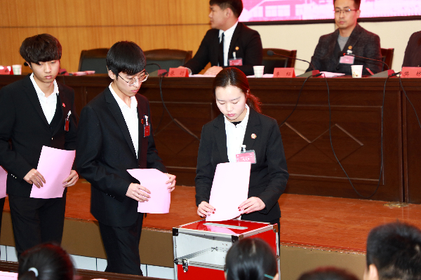 大会审议通过了第一届学生会委员会工作报告,表决通过了《sjb世俱杯官方网站学生会章程(修订案)》,选举产生了新一届学生会委员会委员,校团委向全体与会代表及新一届学生委员会发出倡议,号召大家团结带领全校青年学生,奋发进取,再创佳绩!