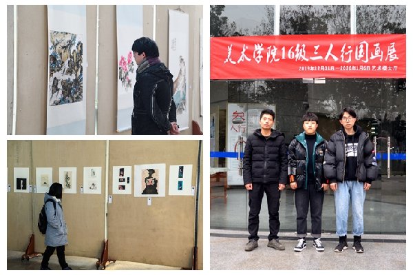 此次“叁人行”学生书画展是美术学院师生相互交流创作技法、创意的平台,共展出作品130幅。三位同学的创作,在学生中引起了极大的反响,同学们纷纷表示,要努力奋进,勤奋学习,不忘学习艺术的初心,牢记复兴中华传统文化的使命,以更多的优秀作品回馈母校的培养。