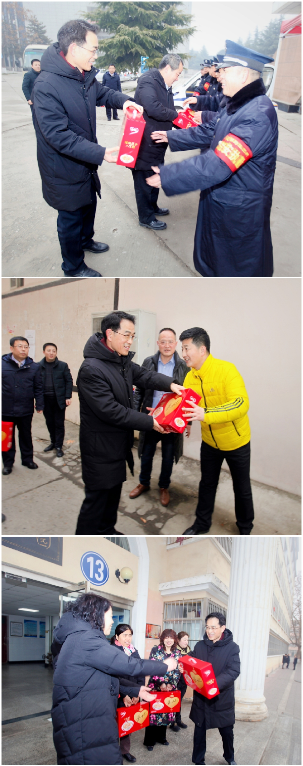 毛龙灿先后到渭城校区和秦都校区看望并慰问了学校总值班室、保卫处、后勤保障处、学生公寓、校医院、教职工餐厅、交通运输中心的值班人员,感谢值班人员在春节期间仍坚守工作岗位、全力做好学校服务保障工作,并向值班人员发放了节日慰问品,送上新春祝福。叮嘱大家要高度重视当前的疫情防控,落实防控措施,加强值班值守,切实做好校园安全保卫工作和春节期间校园及家属区的供暖供电供水等后勤保障工作,让广大教职工过上一个祥和、欢乐、平安的假期。