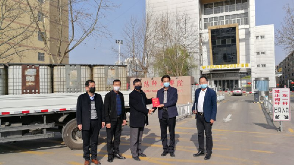 党政办主任张波、后勤保障处处长徐文强、渭城区中小企业服中心、陕西庄臣环保科技有限公司等单位负责人参加了捐赠仪式。