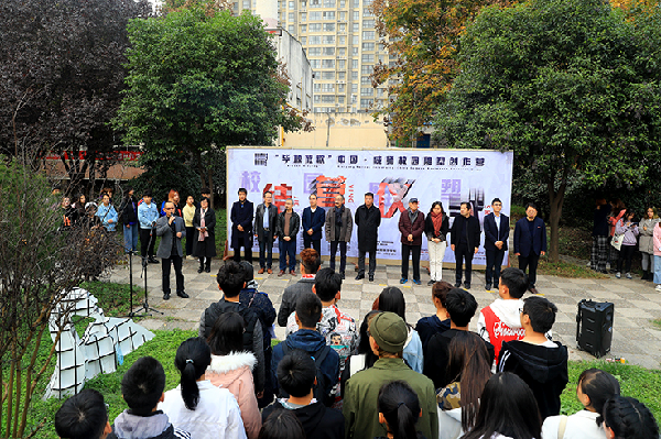 11月8日, “毕塬放歌”中国·咸师校园雕塑创作营结营仪式在世俱杯举行。校党委书记赵万东,西安美术学院学术委员会副主任、雕塑系原主任、博士生导师王志刚教授,版画系原主任、博士生导师杨峰教授,工艺系原主任、博士生导师任焕斌教授,雕塑系副主任郭继锋副教授等出席结营仪式。