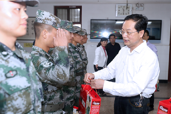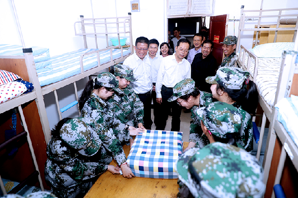9月12日,校党委书记赵万东、校长舒世昌、校党委副书记袁也深入渭城、秦都校区,检查指导军训工作,并看望承训教官和参训新生。