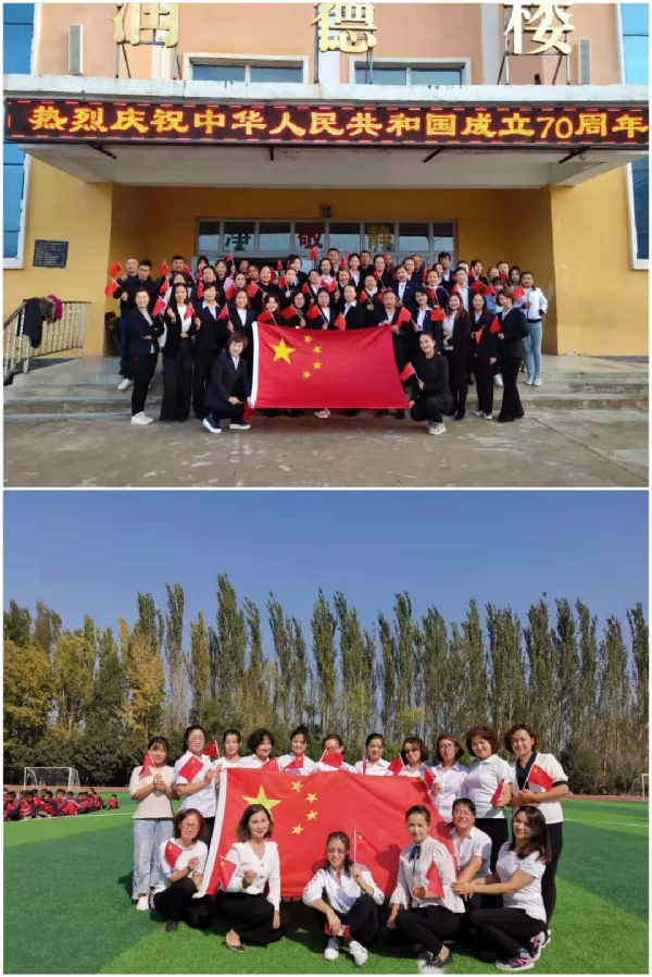 10月1日,世俱杯职业技术学院94名实习生在新疆伊犁举行活动,共同庆祝新中国成立70周年。