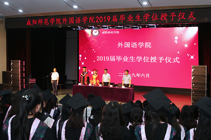 6月27日,外国语学院举行了2019届本科毕业生学位授予仪式。校党委副书记袁也、院党委书记王锐、院长黄永亮、院党委副书记张龙、副院长史元辉出席仪式。