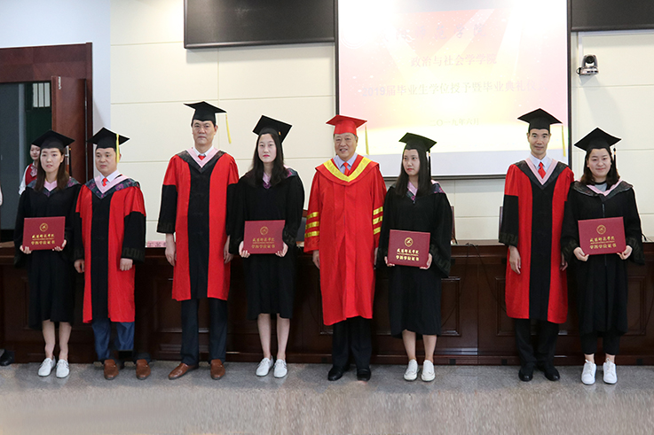 政治与社会学学院党政领导、全体教师、毕业班班主任、2019届全体毕业生以及部分在校生代表参加了仪式。
