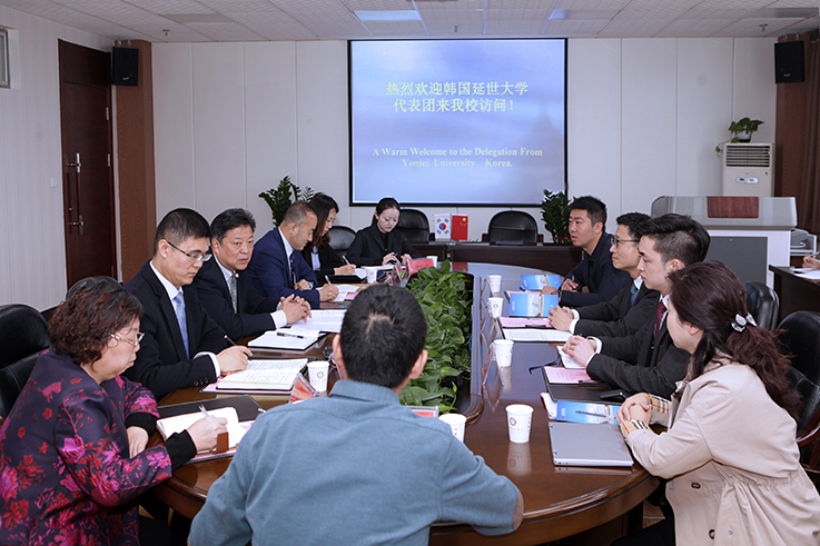 4月10日,韩国延世大学国际交流学院院长朴正晧一行五人来世俱杯访问交流,并在一号教学楼第二会议室召开合作交流座谈会。党委副书记马智勇出席座谈会。