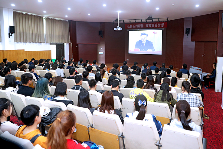 在图书馆四楼学术报告厅,校党委理论学习中心组成员与师生一同收看纪念五四运动100周年大会实况。校党委书记赵万东谈到,习近平总书记的重要讲话,高度评价了五四运动的历史意义,对新时代中国青年提出了六点明确要求,为青年成长成才指明了方向。各级党组织要认真学习、深刻领会习近平总书记的重要讲话精神,切实负起政治责任,努力做青年学子的知心人,青年工作的热心人、引路人。