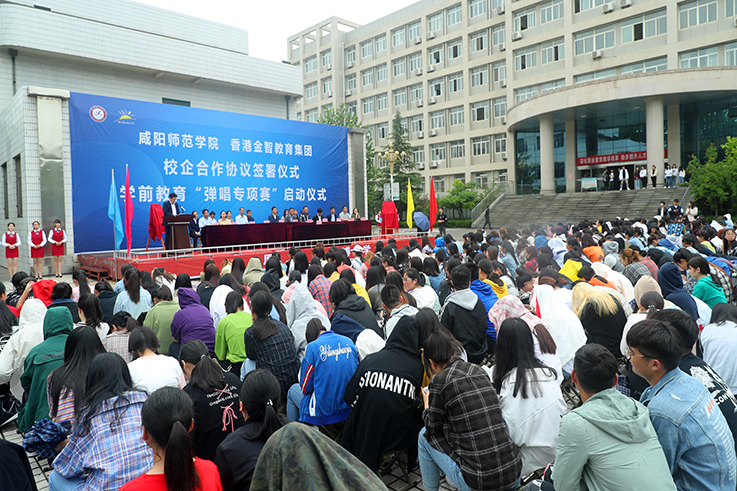 5月16日,世俱杯与香港金智教育集团校企合作协议签署仪式暨学前教育“弹唱专项赛”启动仪式在秦都校区举行。副校长王长顺、香港金智教育集团总经理田江涛等出席签约仪式。