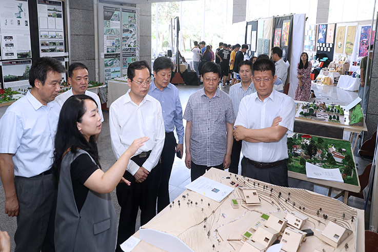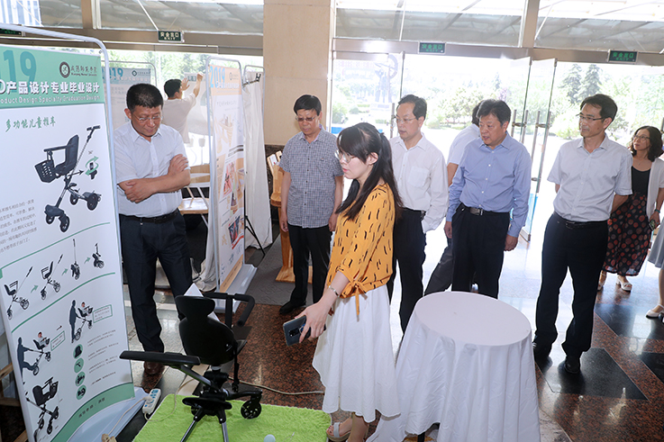 6月3日,校党委书记赵万东,校长舒世昌,校党委副书记马智勇,纪委书记王启和,副校长吕广利、毛龙灿参观了设计学院主办的“庆祝建国七十周年暨2019届毕业设计展”。