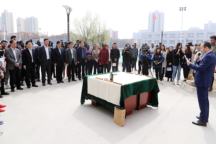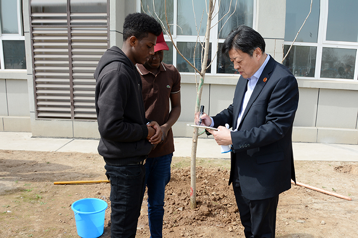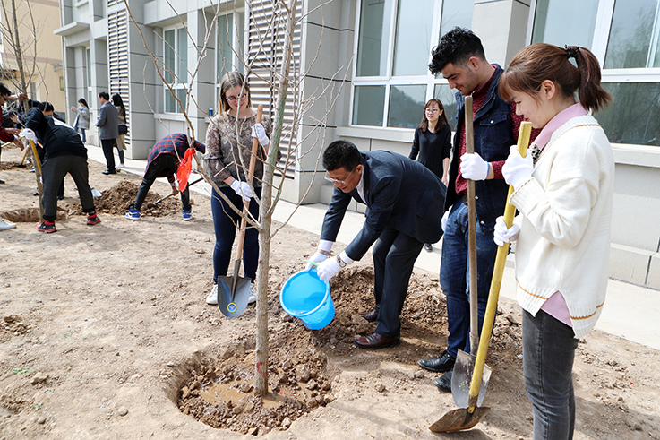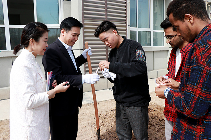 校领导与留学生、中国少数民族代表一起,种下一棵棵寄托着梦想和友谊的希望树、友谊树,留学生和少数民族学生代表将求学与生活的希望化作心愿写于纸上、投于瓶中、系于树根、深埋土里,祈愿把根留住,能像大树一样扎根中国大地,汲取中华文化营养,茁壮成长,成就绚丽多彩的人生。