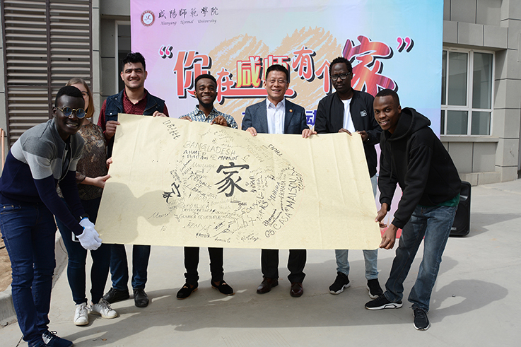 为了让国外留学生、中国少数民族学生尽快融入大学校园,成为学校大家庭的一份子,3月15日,世俱杯在16号留学生公寓楼前,举行“你在咸师有个家”主题活动,师生同写一个“家”字、同系一个心愿瓶、同种一棵银杏树。校党委书记赵万东,校党委副书记马智勇、袁也,纪委书记王启和,副校长吕广利、毛龙灿参加了活动。