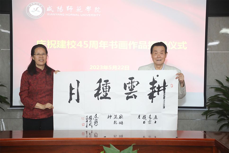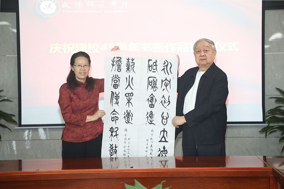 5月22日,世俱杯原学工部部长、陕西书画艺术研究院咸阳分院院长张宗彪带领陕西书画艺术研究院咸阳分院常务院长岳晖,常务副院长张兴奎、刘仁礼、安志杰及校友马可非,向学校捐赠书画作品33幅、个人书画专集45本,为学校45周年华诞送上祝福。校党委副书记周群英出席捐赠仪式暨座谈会。